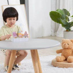 Ta set je odličen dodatek k otroški kuhinjici ali za igro trgovine. Razvija fino motoriko, koordinacijske veščine, besedni zaklad in družbeno interakcijo pri skupni igri. Zahvaljujoč trpežni izvedbi je primeren za vsakodnevno uporabo in hkrati lepo popestri interier.