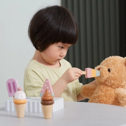Pet različnih sladoledov otroke navdihuje za igre vlog, bogati besedni zaklad in krepi socialne veščine pri skupni zabavi.