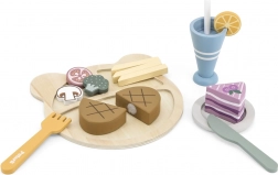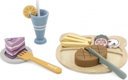 Lesena kosilna set POLARB od VIGA je pripravljena za postrežbo dobrot v slogu. Na krožniček si lahko otroci razporedijo steak, pomfrit, zelenjavo in sladico ter vse »popijejo« s pijačo s slamico. Realistični dodatki spodbujajo posnemanje odraslih ter razvijajo samostojnost in besedni zaklad.
