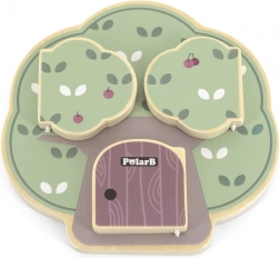 Lesena igra Peek‑a‑Boo drevo POLARB je zasnovana za igrivo raziskovanje. Otroci premikajo in vrtijo delčke, trkajo na vratca in odkrivajo ljubke prebivalce drevesa – sovico, veverico ali ježka. Ta interaktivna igra naravno razvija koordinacijo oko‑roka in spodbuja radovednost.
