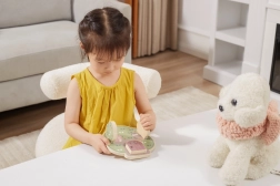 Vrtljenje, premikanje in prijemanje lesenih delčkov vadi prstke in koordinacijo oko‑roka že od 12 mesecev.