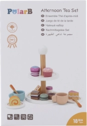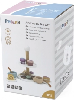 Leseni čajni set je idealen za prve družabne igre otrok. Dvonadstropno stojalo s sladicami, dva krožnika, dve skodelici in žlički ustvarijo popolno sceno za popoldanski čaj ali slavnostno pogostitev. Zaradi skrbne izdelave iz trpežnega lesa je igrača prijetna na otip in varna za male roke.