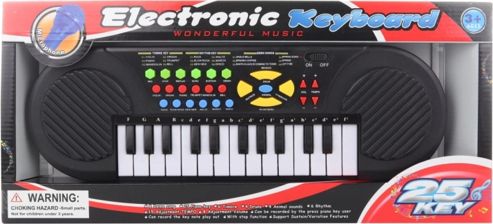 Otroški elektronski klavir je odličen spremljevalec za prve glasbene poskuse. Zahvaljujoč 25 tipkam in izboru spremljevalnih melodij bodo otroci zlahka zaigrali tudi brez predhodnih izkušenj. Funkcija spreminjanja zvoka glasbil prinaša več zabave in spodbuja k raziskovanju.