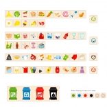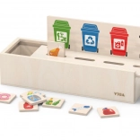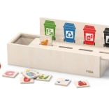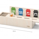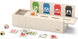 Ta izobraževalna igrača VIGA je idealna za otroke, ki se učijo osnov ločevanja odpadkov. Priložena je lesena škatla z odprtinami za vstavljanje ploščic ter tabla z različnimi smetnjaki. Vključuje tudi 50 lesenih ploščic s slikami odpadkov in barvami, ki ustrezajo reciklažnim kategorijam.