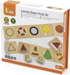 Lesena izobraževalna sestavljanka VIGA je igrača, osredotočena na razvoj kognitivnih in motoričnih sposobnosti otrok. Kakovostna sestavljanka je izdelana iz naravnega lesa in barvana z nestrupenimi barvami, kar zagotavlja varnost za vašega otroka. Komplet vsebuje različne oblike, ki jih otroci povezujejo z vsakodnevnimi predmeti, kot so cvetlični lonček (trapez) ali kos pice (trikotnik).