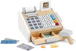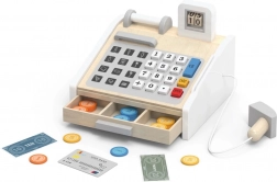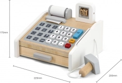 Blagajna ima realističen dizajn z zaslonom in izvlečno predalom, ki otrokom daje občutek prave uporabe blagajne.