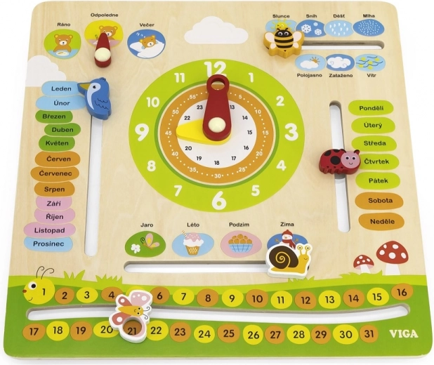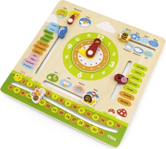 Ta interaktivni leseni koledar blagovne znamke VIGA je zasnovan tako, da otrokom pomaga širiti znanje o datumu, času, vremenu in letnih časih. Lahko ga obesite na steno ali postavite na mizo, kar ga naredi ne samo funkcionalen, ampak tudi dekorativen element v otroški sobi. Z privlačnimi barvami in prikupnimi ilustracijami je učenje zabavno.