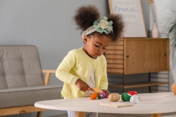 Otroci se med igro učijo prepoznati različne vrste zelenjave in vadijo svoje kognitivne sposobnosti.