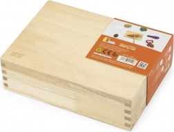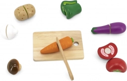 Garnitura omogoča otrokom vadbo fine motorike pri rezanju in sestavljanju zelenjave v prvotne oblike.