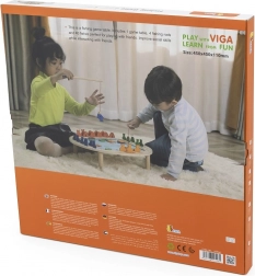 Lesena miza z barvitimi ribicami in štirimi palicami spodbuja tekmovalno igro ter razvoj motoričnih spretnosti v skupini.