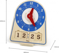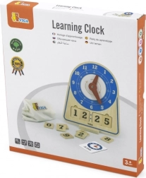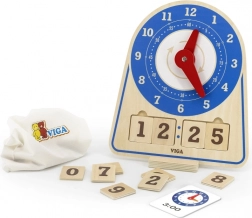 Lesena ura za učenje časa znamke Viga je izjemno izobraževalno pomagalo, ki združuje zabavo in učenje. Ta samostoječa igrača vsebuje 12 instruktivnih kartic, ki otrokom pomagajo osvojiti poznavanje ur. Otrok lahko samostojno nastavi poljuben čas s pomočjo kartic ali se uči slediti uri. Ekološka torbica omogoča enostavno shranjevanje dodatkov.