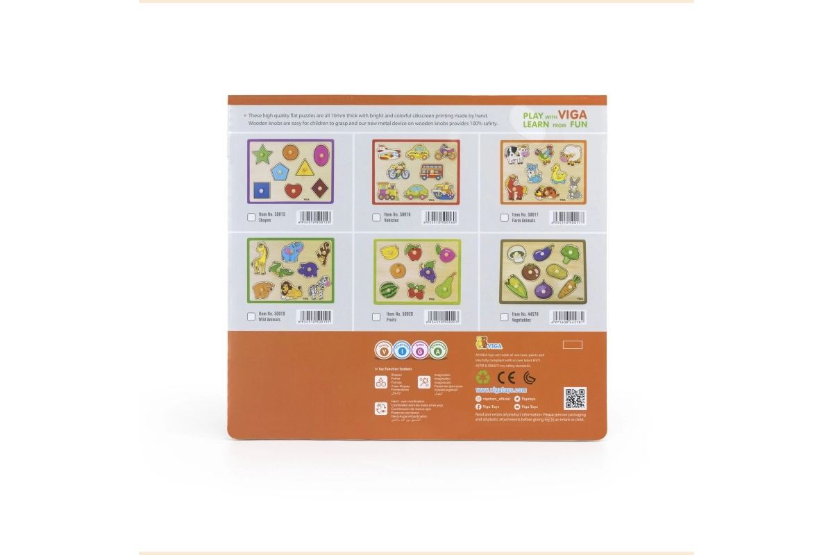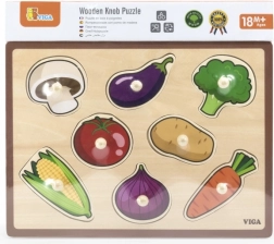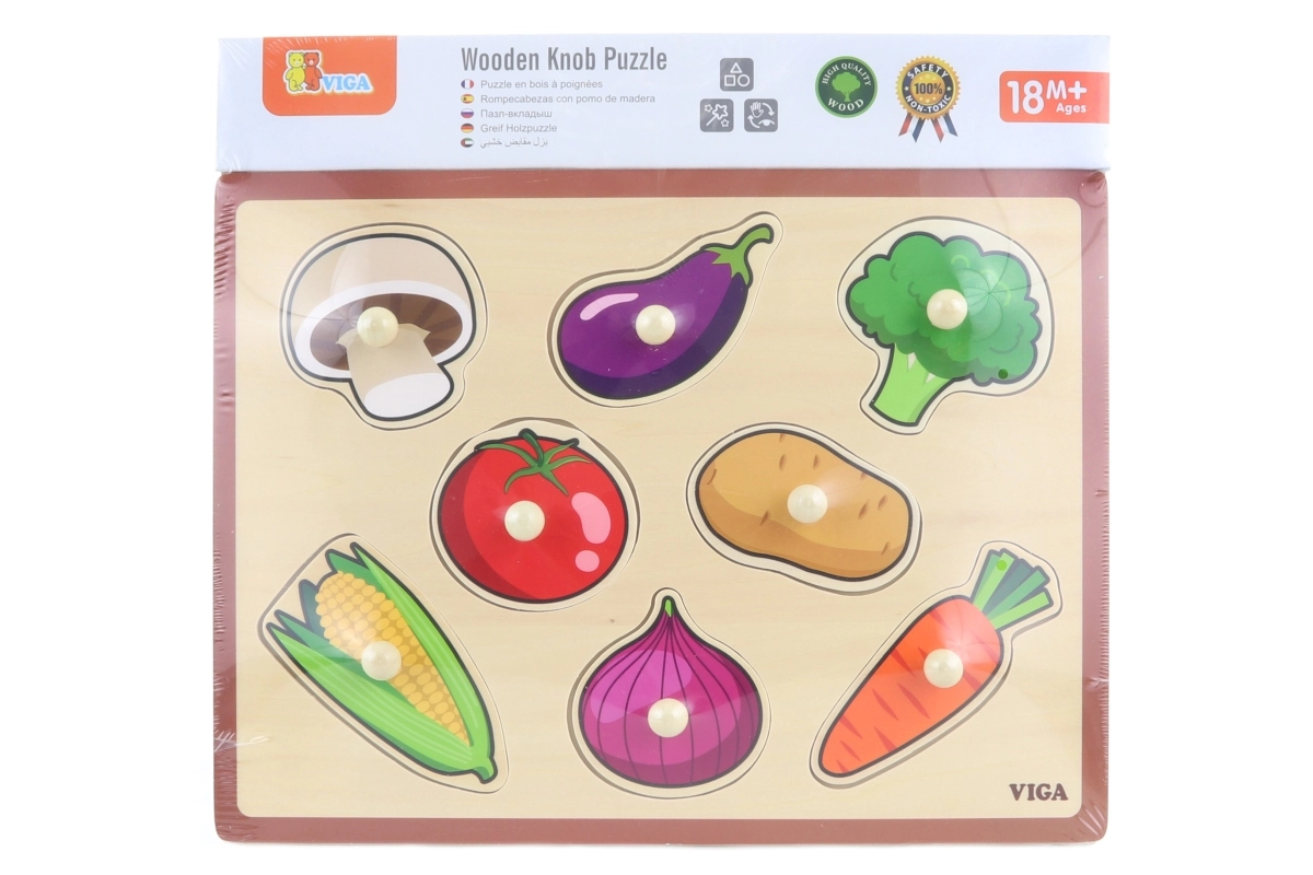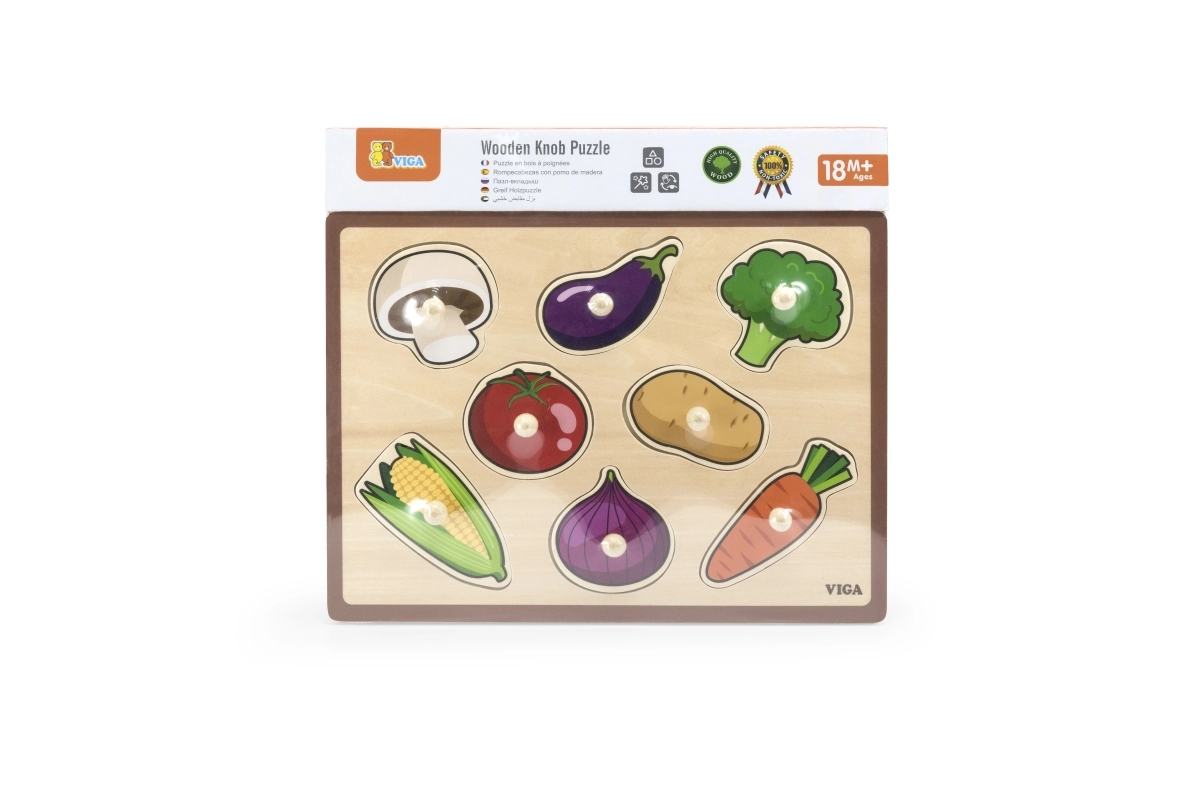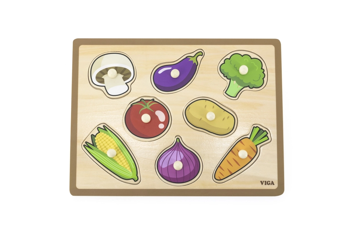 Lesena vstavljanka z zelenjavo je odlična izbira za prve izobraževalne igrače. Otroci se na zabaven način učijo prepoznavati oblike, barve in posamezne vrste zelenjave. Trdna lesena plošča z izrezi in gladko obdelani koščki so prilagojeni majhnim otroškim rokam.