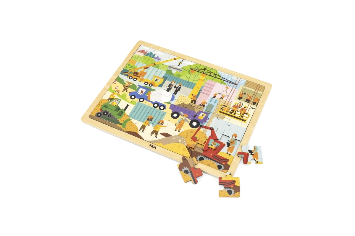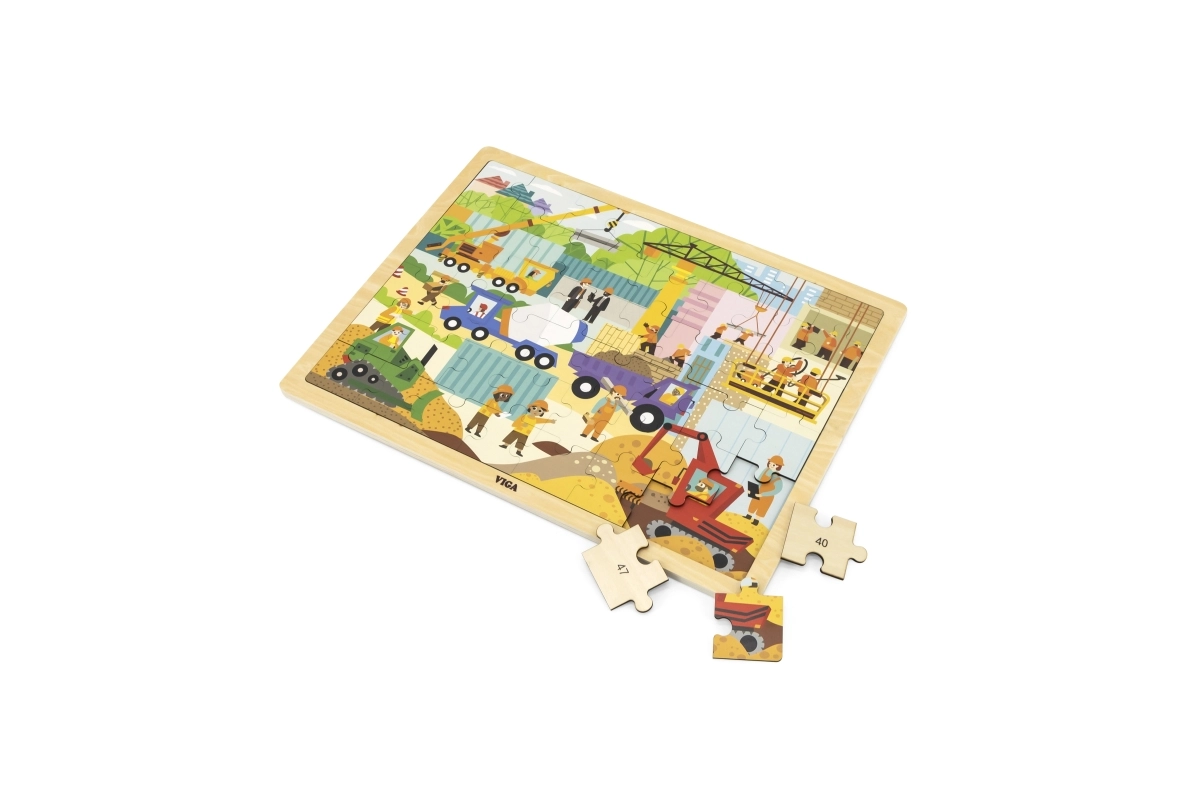 Kakovostne lesene puzzle z motivom gradbišča so idealna izbira za prve večje sestavljanke. Z 48 natančno izrezanimi kosi si otroci urijo koordinacijo oko–roka in se učijo prepoznavati oblike ter barve. Trdna lesena podlaga drži sliko skupaj in olajša rokovanje.
