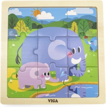 Klasične lesene sestavljanke z veselimi motivi slonov so idealna prva sestavljanka za najmlajše. Trdni deli se zlahka primejo in sestavljajo na priloženo ploščo, ki pomaga pri orientaciji in ohranja sliko skupaj.
