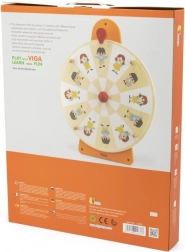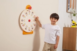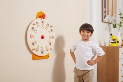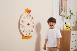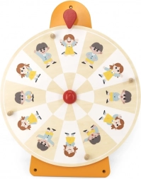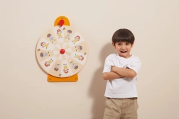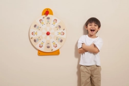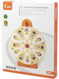 Ta lesena stenska igra razvija opazovalne sposobnosti, hitre reakcije in koordinacijo oko–roka. Otroci zavrtijo kolo in puščica pokaže izraz ali dejavnost, ki jo morajo posnemati – tako naravno vadijo izražanje čustev, logično mišljenje in fino motoriko.