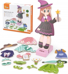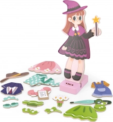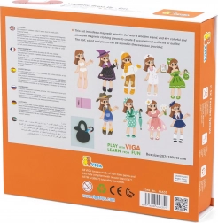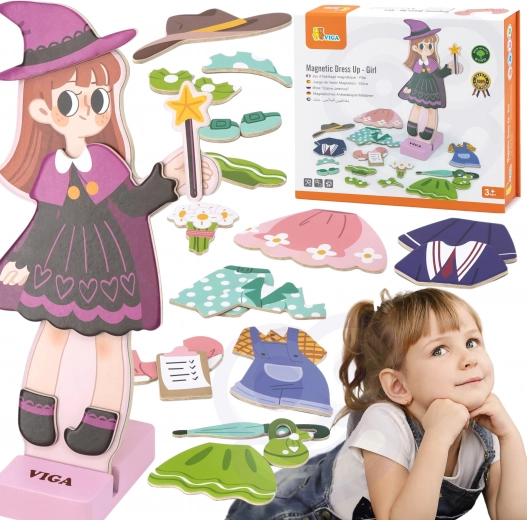 Odkrijte ustvarjalni svet preoblek s kakovostno leseno sestavljanko VIGA. Magnetni deli oblačil se zlahka pritrdijo na figurico deklice, zato lahko otroci hitro menjajo opravila in ustvarjajo zabavne kombinacije. Igrača je izdelana iz trpežnega lesa in barvana z netoksičnimi barvami, primernimi za otroke.