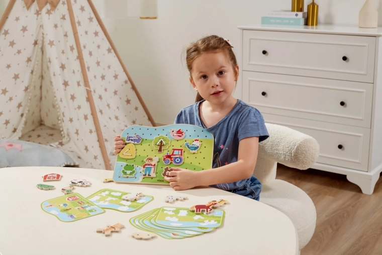 Odkrijte zabavno in izobraževalno igro za najmlajše: leseni prepletalni set s kmečkimi motivi znamke VIGA. Otroci pri prepletanju vrvic urijo fino motoriko, natančnost in koordinacijo oko–roka. Kakovita lesena izdelava in netoksične barve zagotavljajo varno igro, polno ustvarjalnosti in veselja.