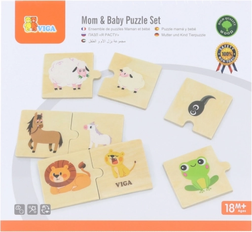 Odkrijte zabavne in poučne lesene sestavljanke, pri katerih otroci uparjajo starše in mladiče živali. Komplet znamke VIGA razvija fino motoriko, logično razmišljanje, koncentracijo in besedni zaklad zahvaljujoč preprostemu principu prirejanja. Idealno za otroke od 18 mesecev.