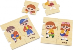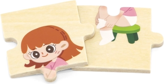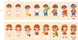 Ta kakovostna lesena izobraževalna igrača otroke uči pravilnega zaporedja oblačenja z zlaganjem zaporednih delov s podobami dečka in deklice. Vsak del ima edinstven motiv in natančno sodi skupaj, zato otroci med igro urijo razumevanje povezav in potrpežljivost.