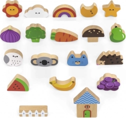 Lesena Montessori sestavljanka – barvne geometrijske oblike in figurice
