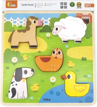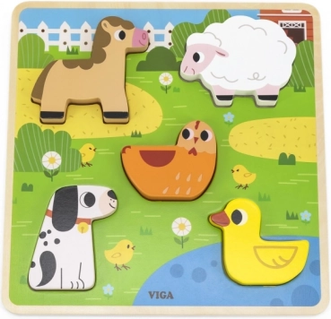 Odkrijte zabavne lesene vstavljanke s motivom kmetije znamke VIGA. Barvna plošča in pet masivnih živalskih koščkov pomagata razvijati fino motoriko, koordinacijo oko–roka in logično razmišljanje. Idealna igrača za najmlajše od 18 mesecev – varna, trpežna in enostavna za prijem malih rokic.