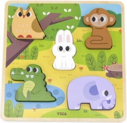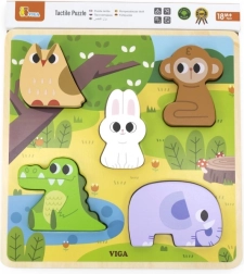 Lesena vstavljanka VIGA z gozdnimi živalmi je idealna prva sestavljanka za najmlajše. Naloga je pravilno prirejati oblike živalic označenim odprtinam na barvni podlagi. Deli lepo sedejo v otroške ročice, trdna lesena konstrukcija pa zagotavlja dolgo obstojnost.