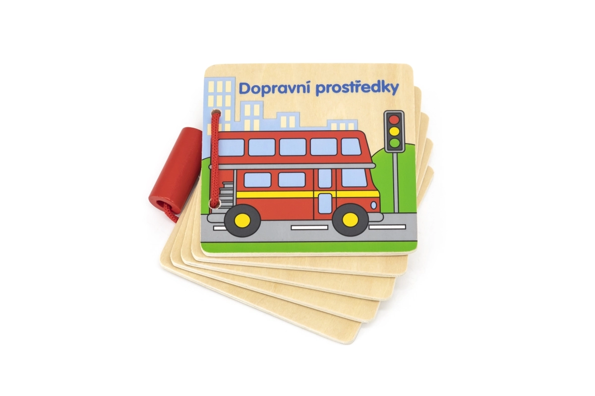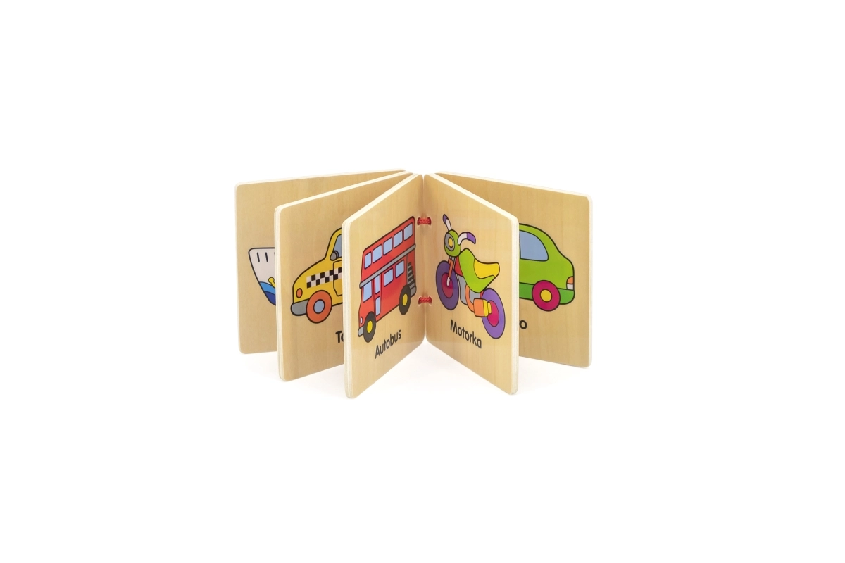 Ta kakovostna lesena knjižica je idealen pripomoček za prvo spoznavanje z okolnim svetom. Barvite ilustracije avtomobilov, vlakov, ladij in drugih prevoznih sredstev dopolnjujejo češki napisi, zato otroci naravno razvijajo govorne spretnosti in spoznavanje.