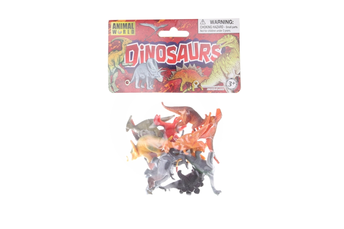 Odkrijte svet prazgodovine s tem zabavnim kompletom plastičnih dinozavrov v vrečki. Pakiranje vsebuje približno 12 podrobno izdelanih figuric, kot so tiranosaver, triceratops, stegozaver in velociraptor. Vsaka figurica meri približno 4–6 cm in je idealna za otroke od 3. leta dalje.