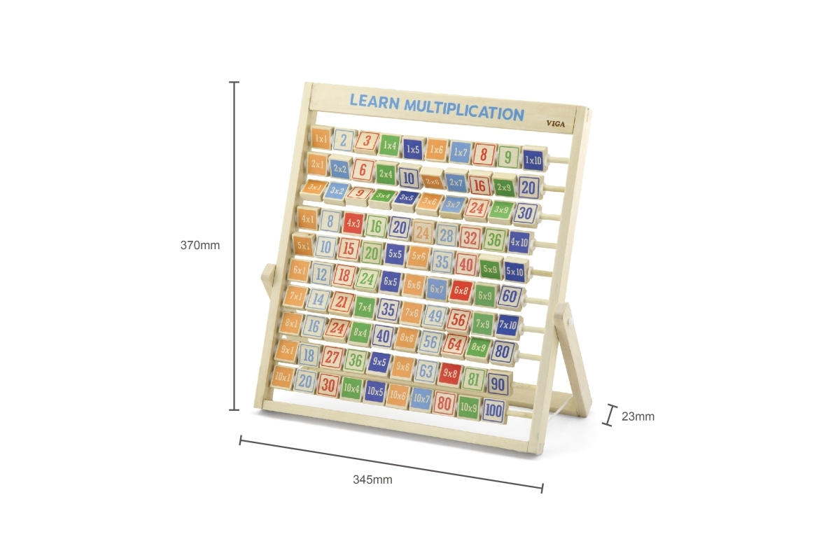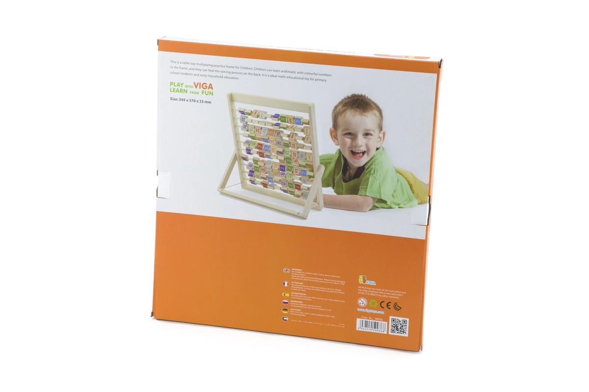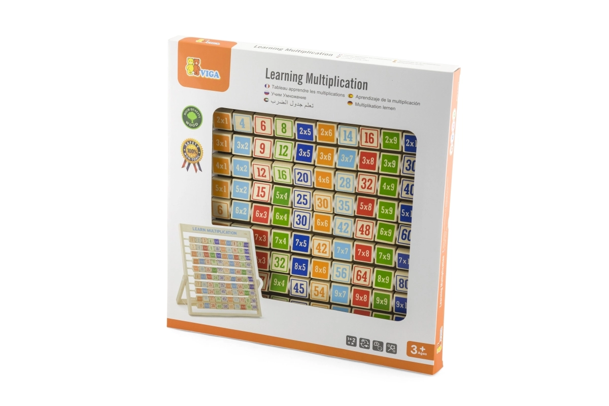 Ta kakovostna lesena tabla za poštevanko razvija logično mišljenje, koncentracijo in fino motoriko. Zaradi pregledne razporeditve in barvnih kock otroci hitro razumejo principe množenja, rezultate pa lahko kadar koli preverijo z obratom kocke.