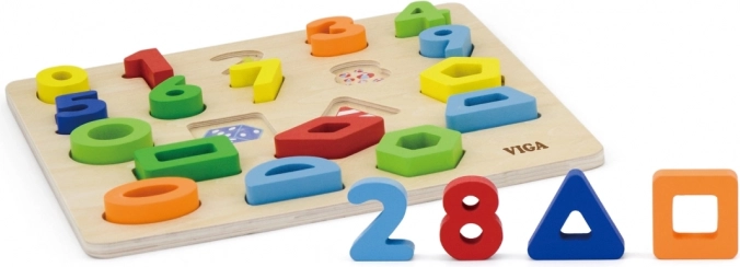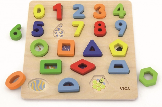 Lesena vstavljanka VIGA – številke in liki je odličen način, kako otroke seznaniti s prvimi številkami in osnovnimi geometrijskimi liki. Zaradi živih barv in trdne lesene izdelave si otroci vadijo koordinacijo oko–roka, razlikovanje likov in barv ter logično razmišljanje. Vsak košček ima svoje mesto, kar spodbuja potrpežljivost in zbranost.