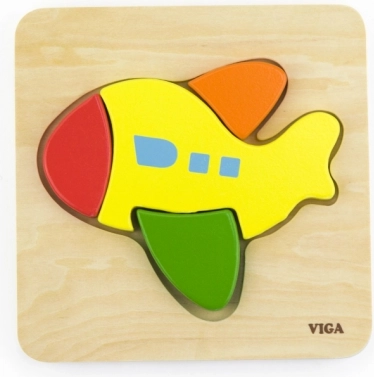 Lesene sestavljanke Viga Letalo so odlična izbira za prve poskuse sestavljanja doma ali v vrtcu. Zahvaljujoč štirim barvitim, robustnim koščkom si otroci hitro osvojijo princip ujemanja oblik v ustrezne izreze. Kakovostna izdelava, gladki robovi in nestrupene barve zagotavljajo varno igro.