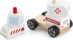 To leseno reševalno vozilo je odlična kombinacija sestavljanke in vozila na kolescih. Otroci lahko posamezne dele sestavijo v reševalno vozilo in nato uživajo v vožnji zahvaljujoč gladko vrtečim se kolescem. Robustni les, kakovostne barve in zaobljeni robovi zagotavljajo varno igro in dolgo življenjsko dobo.