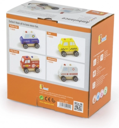 Odkrijte kakovostno leseno reševalno vozilo, ki združuje sestavljive kocke in pomična kolesca za zabavno igro ter razvoj motorike. Varna izvedba z gladkimi robovi, idealna za otroke od 18 mesecev. Kompaktne mere, trpežni materiali in privlačen dizajn s potiskom AMBULANCE zagotavljajo ure ustvarjalne zabave.