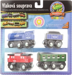 Različne komponente: Lokomotiva, tender, osebni in poštni vagon.
