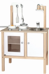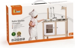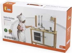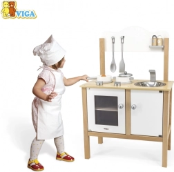Lesena otroška kuhinjica znamke Viga je idealna za male kuharje, ki želijo posnemati kuhanje. Ta lesena konstrukcija z modernim belim in naravnim lesenim videzom je hkrati trpežna in elegantna, zato se poda v vsak otroški prostor.