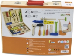 Ta kakovosten leseni komplet orodja znamke VIGA otrokom prinaša realističen občutek dela z orodjem. Barvni in trpežni kosi, kot so vrtalnik, kladivo, izvijač, ključ in žagica, spodbujajo domišljijo ter ponujajo varen način za razvoj spretnosti in koordinacije oko–roka.