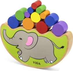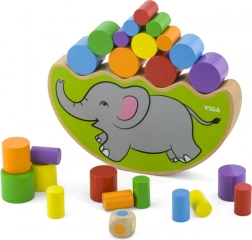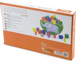 Ukrožena slonova podlaga in različne velikosti valjčkov učijo otroke občutljivega uravnoteženja in natančnega polaganja delov.