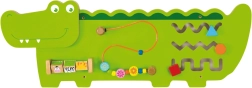 Odkrijte zabavno in izobraževalno igračo, ki prihrani prostor – stenska tabla krokodil združuje več dejavnosti v enem kompaktnem izdelku. Otroci lahko premikajo oblike v 3 labirintih, vadijo prstke na žični pletilni stezi s kroglicami in sestavljajo slike iz vrtljivih kock – sestavljanke. Pisane barve in simpatičen dizajn takoj vabijo k igri.