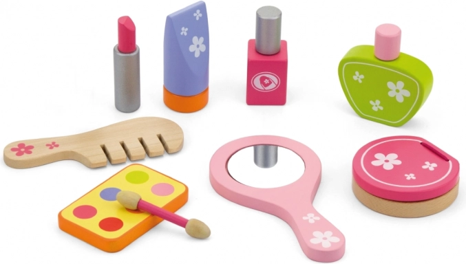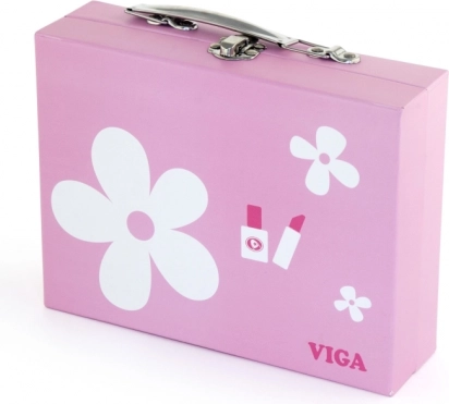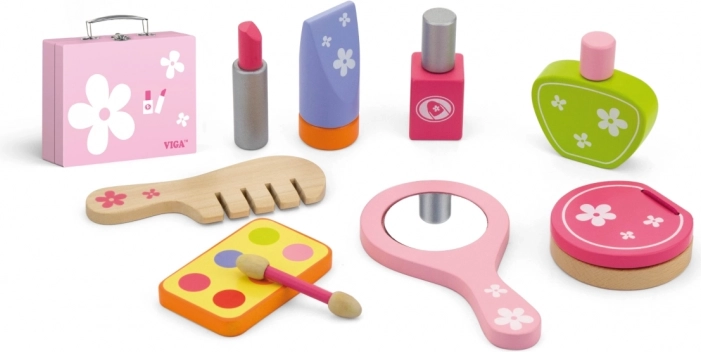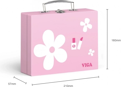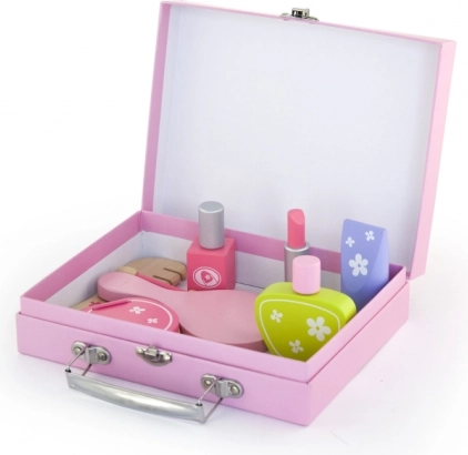 Stilski leseni lepotni set za male navihanke v praktičnem kovčku bo razveselil vsakega otroka od 3. leta dalje. Vsebuje vse za realistično igro salona – glavnik, ogledalce, lak za nohte, šminko, dišavo in druge dodatke. Zahvaljujoč robustnemu lesu in gladko obdelanim delom je igra varna in dolgotrajno obstojna. Spodbuja domišljijo, fino motoriko in socialne veščine.