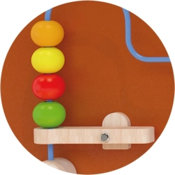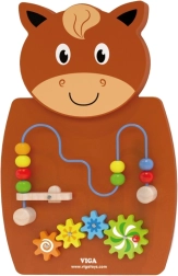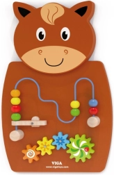 Lesena aktivna plošča v obliki konja je ena vodilnih igrač za razvoj ustvarjalnosti in učenja otrok. Opremljena je z lesenimi zobniki in potjo za kroglice na žički, ki jih lahko otroci premikajo s pomočjo vzvodnega mehanizma. Igrača navdušuje s pestro paleto barv in oblik, kar pomaga pri razvoju sposobnosti prepoznavanja barv in oblik.