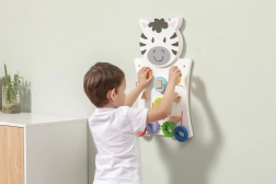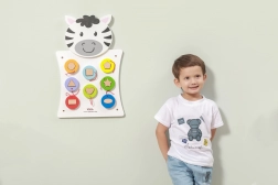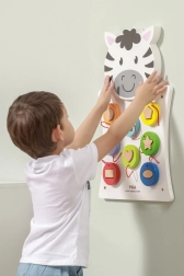 Odkrijte čar lesene stenske table Zebra podjetja VIGA, ki razvija ne le ustvarjalno razmišljanje in spretnost, temveč tudi sposobnost prepoznavanja oblik in barv. Ta igra je primerna za malčke, ki skozi igro razvijajo svoje senzorične veščine.