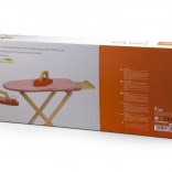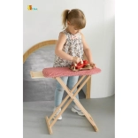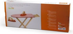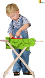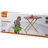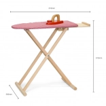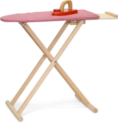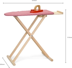 Set vključuje zložljivo desko z odlagalno poličko ter lesen likalnik z vrtljivim gumbom za še več zabave. Zaradi kompaktnih mer se zlahka pospravi in prilega vsakemu otroškemu prostoru.