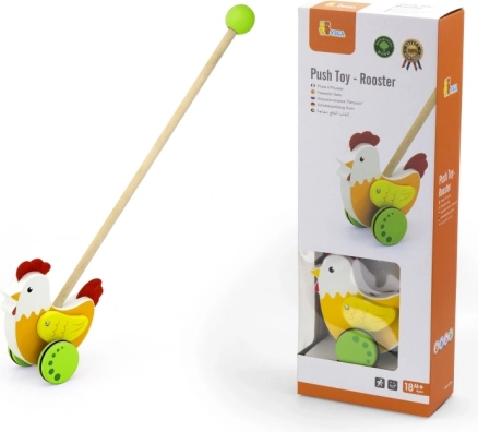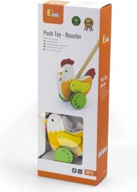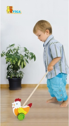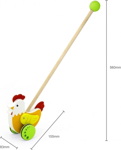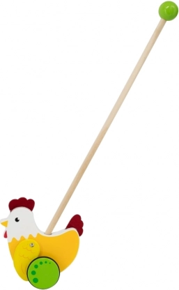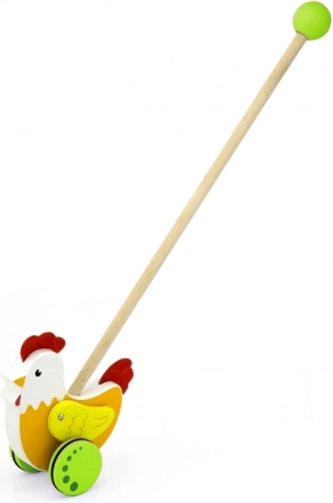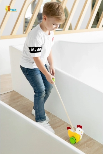 Ta potiskač s kokoško podpira otroke pri razvoju njihove hoje in koordinacije.