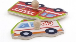 Zaradi lesenih ročajev se otroci naučijo pravilno manipulirati s posameznimi kosi in prepoznati zvoke prevoznih sredstev.