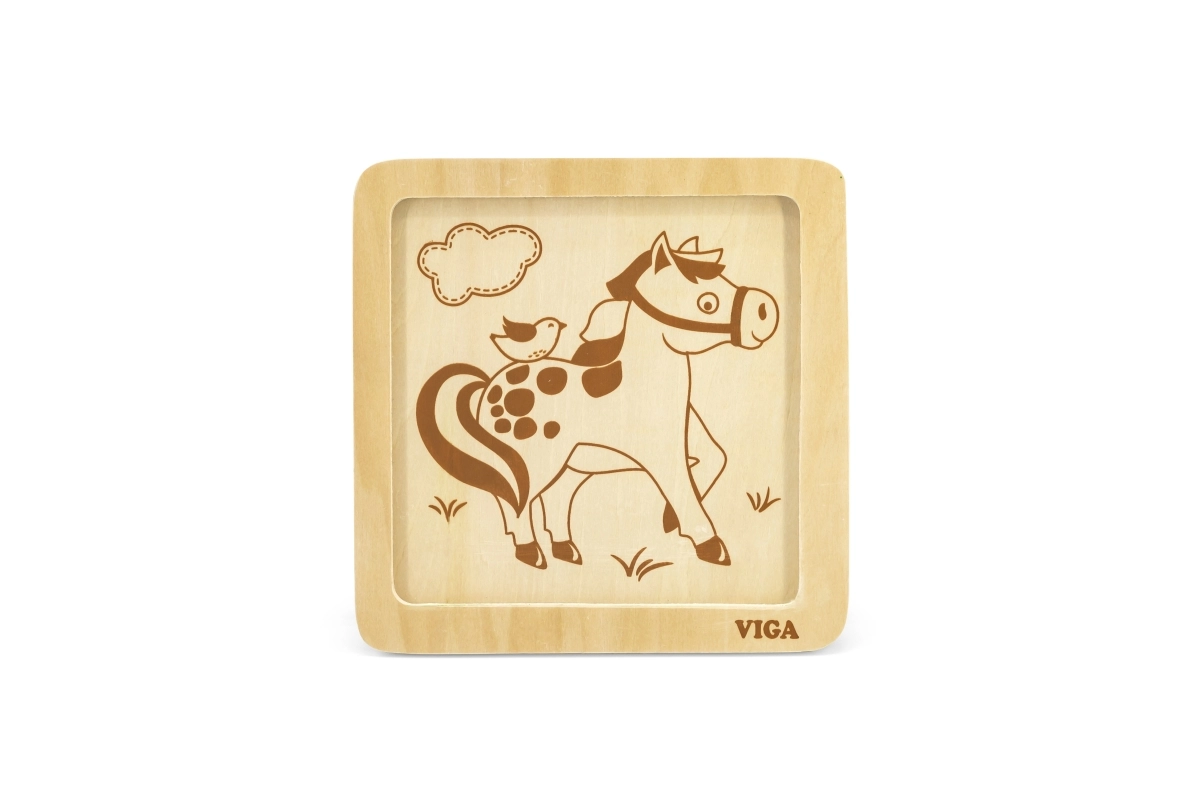 Barvita slika s konjem in ptičkom pritegne otroke ter spodbuja vizualno zaznavanje in učenje barv ter oblik.