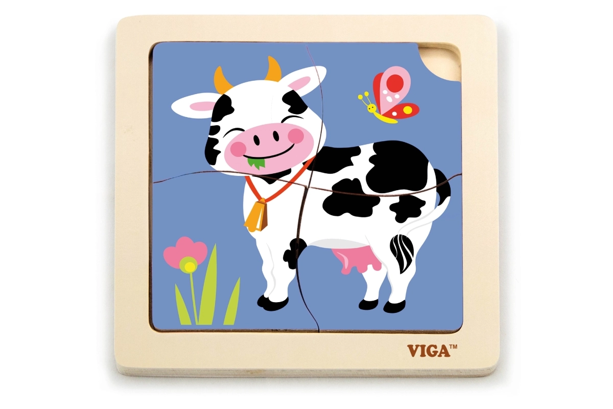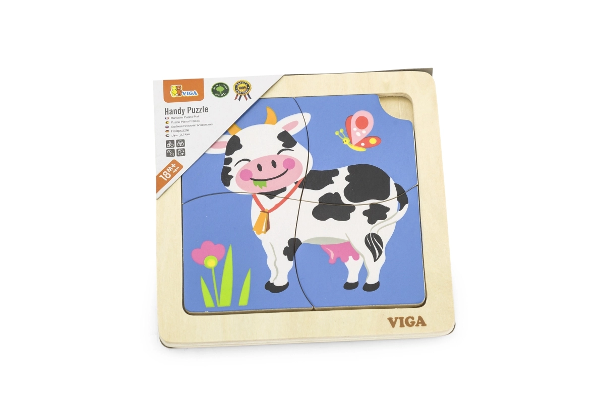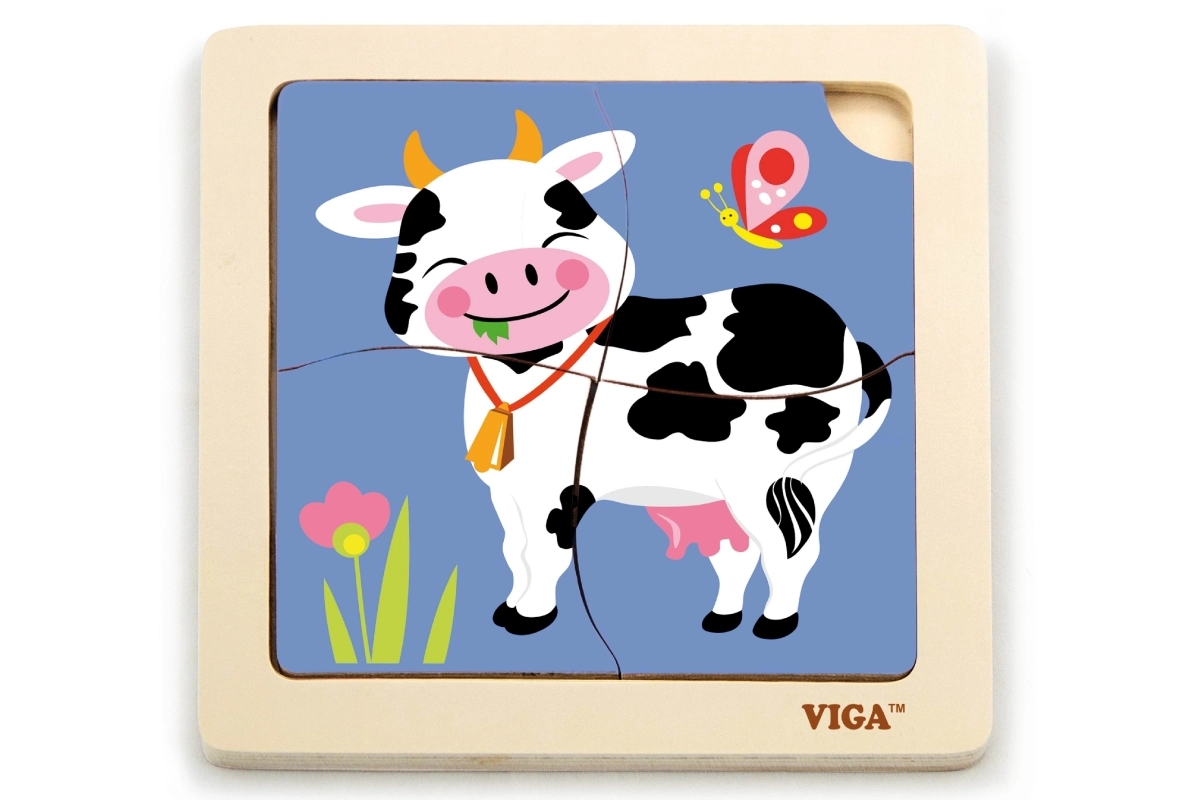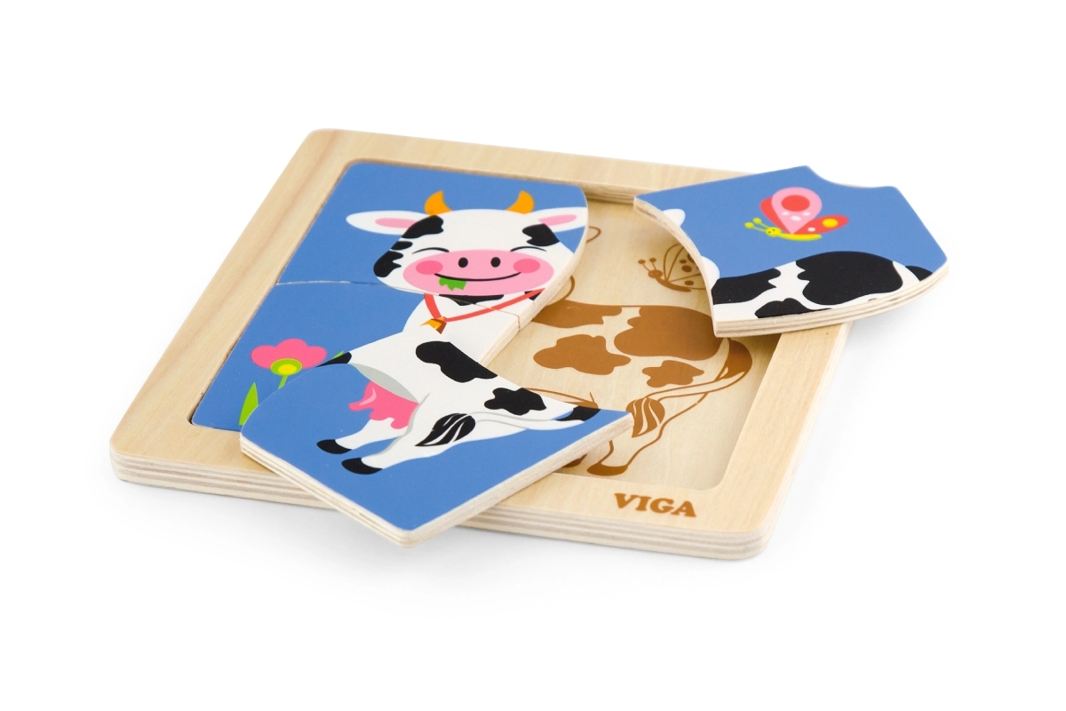 Lesene puzzle kravička znamke Viga ponujajo malčkom odličen način za učenje prepoznavanja oblik in razvoj fine motorike. Set vsebuje 4 koščke sestavljanke ter podobo, ki pomaga otroku pri sestavljanju delov. Puzzle so skrbno izdelane iz varnih lesenih materialov in pobarvane z živimi, nestrupenimi barvami. Vsaka igra s temi puzzlami bo za vašega malčka polna veselja in napredka.