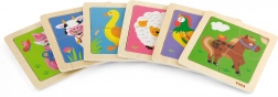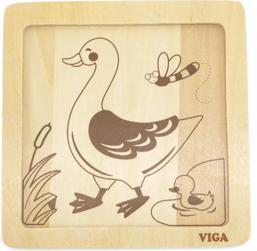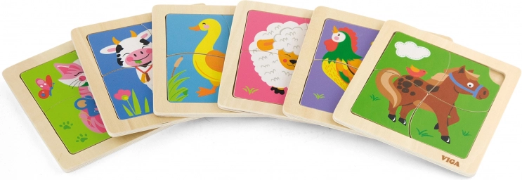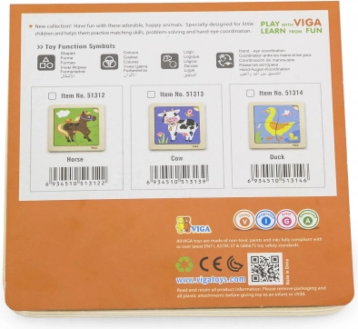 Lesene puzzle Viga vsebujejo štiri tematske koščke, ki jih je enostavno namestiti na podlago s sliko. Vsak košček je izdelan iz kakovostnega lesa in pobarvan z varnimi, nestrupenimi barvami, ki zagotavljajo varnost otrok in okolja.