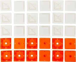 Vključuje različne oblike, kot so kvadrati, trikotniki in druge, kar omogoča izdelavo različnih sestav.