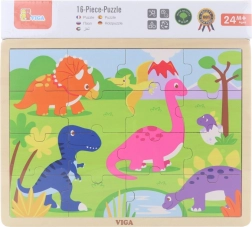 Barvita lesena sestavljanka VIGA z motivom dinozavrov je odlična izbira za prvo sestavljanje. Otroci na zabaven način urijo zaznavo, koncentracijo in prostorsko predstavo, medtem ko robustni leseni koščki prijetno sedejo v male roke.