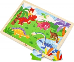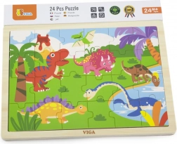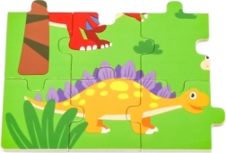 Lesene sestavljanke s prikupnim motivom dinozavrov bodo razveselile vse male ljubitelje prazgodovine. Zaradi 24 kosov so odlična izbira za prvo samostojno sestavljanje ter za razvoj koordinacije oko–roka in potrpežljivosti. Kakovostna izdelava in gladki robovi zagotavljajo varno in prijetno igro.